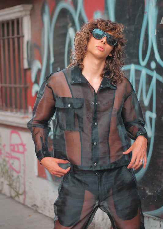 Chamarra transparente negra