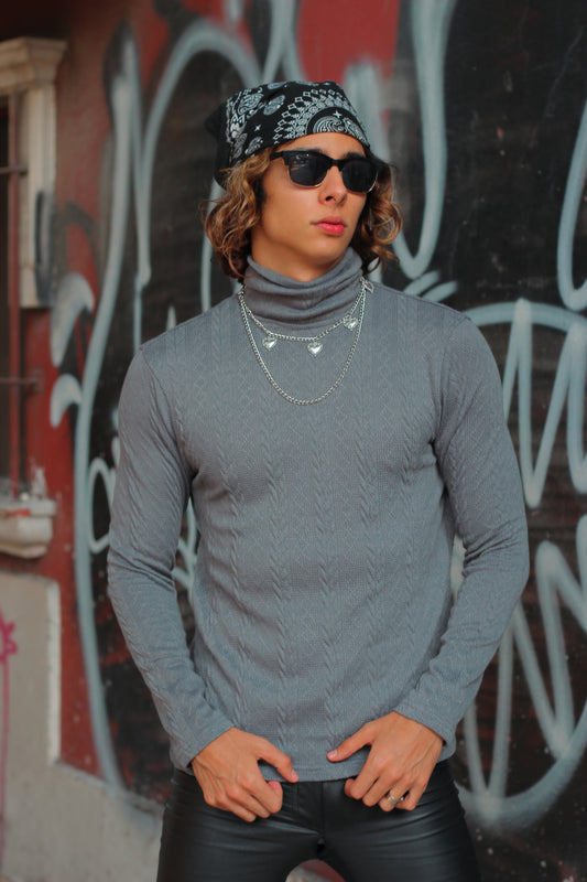 Top cuello alto gris grueso unitalla